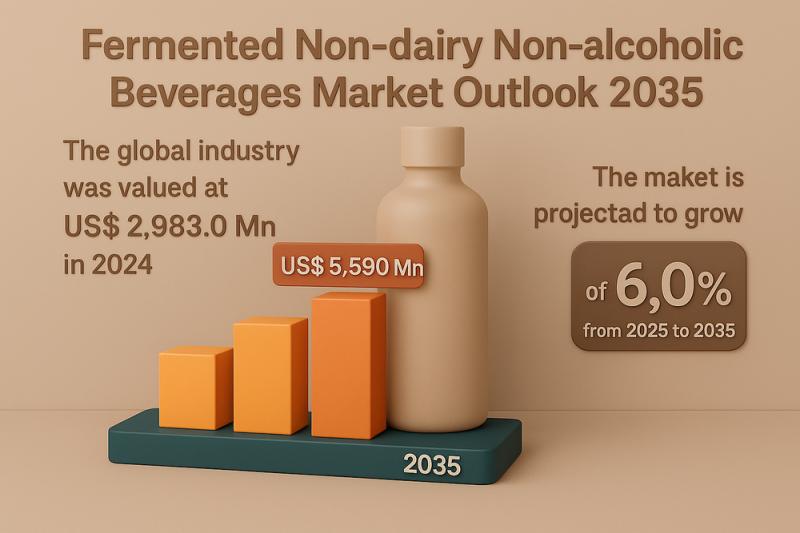 According to the latest industry analysis, the global fermented non-dairy non-alcoholic beverages market was valued at US$ 2,983.0 Mn in 2024 and is projected to reach US$ 5,590 Mn by 2035, expanding at a CAGR of 6.0% from 2025 to 2035. The market is witnessing rapid transformation as consumers shift toward plant-based, probiotic-rich, and clean-label functional drinks that support wellness, immunity, and digestive health.
