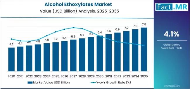 The global alcohol ethoxylates market is set for steady expansion over the next decade, driven by rising demand for advanced surfactant systems across detergents, agrochemical formulations, and industrial applications. According to FactMR, the market is valued at USD 5.2 billion in 2025 and is projected to reach USD 7.8 billion by 2035, reflecting a compound annual growth rate (CAGR) of 4.1%.