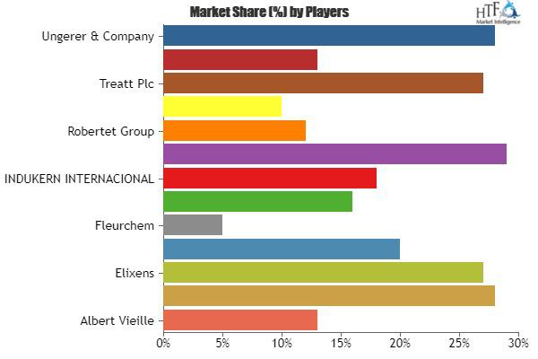 Some of key competitors or manufacturers included in the study are Albert Vieille, Berje, Elixens, Ernesto Ventos, Fleurchem, H.Interdonati, INDUKERN INTERNACIONAL, Penta Manufacturing Company, Robertet Group, Ultra international, Treatt Plc, PerfumersWorld & Ungerer & Company