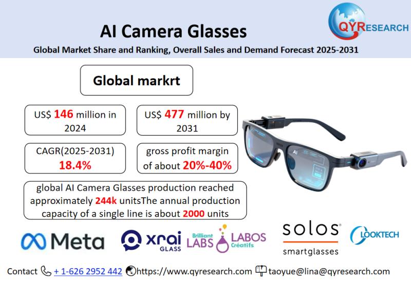 Global leading market research publisher QYResearch published the release of its latest report, "AI Camera Glasses - Global Market Share, Ranking, Sales, and Demand Forecast 2025-2031". This in-depth report provides a complete analysis of the global AI Camera Glasses market, offering critical insights into market size, share, demand, industry development status, and future forecasts. Whether you're a…
