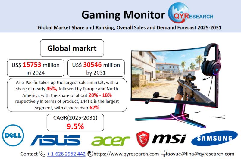 Global leading market research publisher QYResearch published the release of its latest report, "Gaming Monitor - Global Market Share, Ranking, Sales, and Demand Forecast 2025-2031". This in-depth report provides a complete analysis of the global Gaming Monitor market, offering critical insights into market size, share, demand, industry development status, and future forecasts. Whether you're a stakeholder, investor, or…