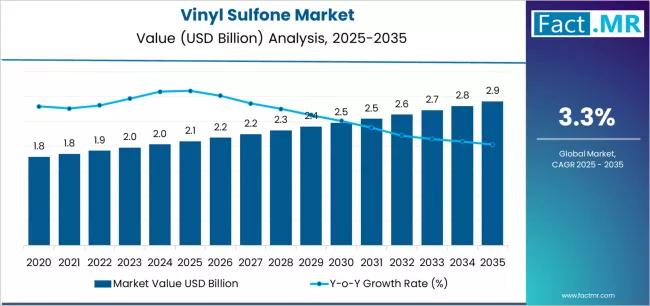 The global vinyl sulfone market is set for measured expansion, valued at USD 2.1 billion in 2025 and forecasted to attain USD 2.9 billion by 2035, reflecting a compound annual growth rate (CAGR) of 3.3%. This trajectory highlights vinyl sulfone's vital role as a reactive intermediate in textile dyes, bioconjugation, and water treatment, driven by sustainable chemistry innovations and rising demands in specialty chemicals and life sciences.