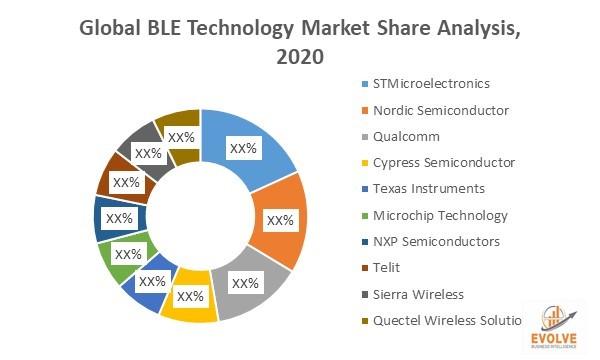 Some of the major BLE Technology players holding highest market share include STMicroelectronics, Nordic Semiconductor, Qualcomm and Cypress Semiconductor. These players use new product development as a key strategy to gain significant market share to compete with market leaders.