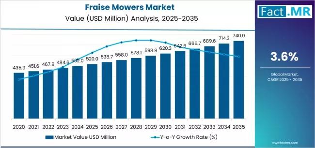 The global fraise mower market is poised for substantial growth through 2035, driven by increasing mechanization in agriculture, landscaping, and land management sectors. According to FactMR, the market is valued at USD 780 million in 2025 and is projected to reach USD 1.2 billion by 2035, expanding at a compound annual growth rate (CAGR) of 4.5%.
