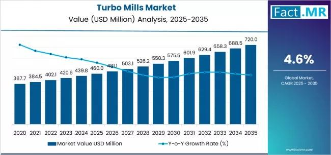 The global turbo mills market is set for robust growth through 2035, driven by rising demand across the cement, chemical, and mining industries, as well as the push for energy-efficient milling solutions. According to FactMR, the market is valued at USD 1.6 billion in 2025 and is projected to reach USD 2.4 billion by 2035, expanding at a compound annual growth rate (CAGR) of 4.2%.