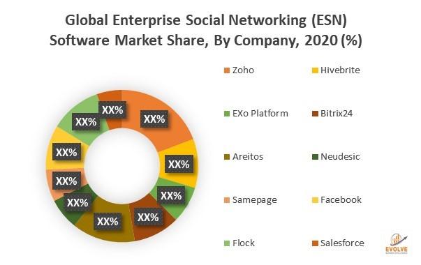 Some of the major Enterprise Social Networking (ESN) Software players holding highest market share include Zoho, Hivebrite, EXo Platform, Bitrix24, Areitos, Neudesic, Samepage, Facebook, Flock, Salesforce.. These players use new product development as a key strategy to gain significant market share to compete with market leaders.