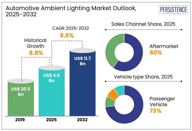 The global automotive ambient lighting market is poised for significant growth in the coming years, driven by rising consumer demand for enhanced vehicle aesthetics, interior customization, and advanced user experience. According to Persistence Market Research, the market is projected to grow from US$ 4.6 billion in 2025 to US$ 11.7 billion by 2032, at a CAGR of 9.6%. Automotive ambient lighting is increasingly being integrated into vehicle interiors to create…