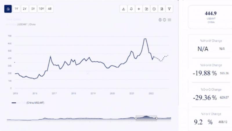 Each price record is linked to an easy-to-use graphing device dated back to 2014, which offers a series of functionalities; customization of price currencies and units and downloading of price information as excel files that can be used offline.