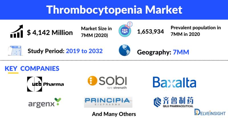 • The Thrombocytopenia market size was valued at USD 4,142 Million in the year 2020 and is anticipated to grow with a significant CAGR during the study period (2019-2032)