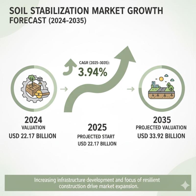 Soil Stabilization Market Size USD 33.92 Billion with CAGR 3.94% by 2025-2035 Du …