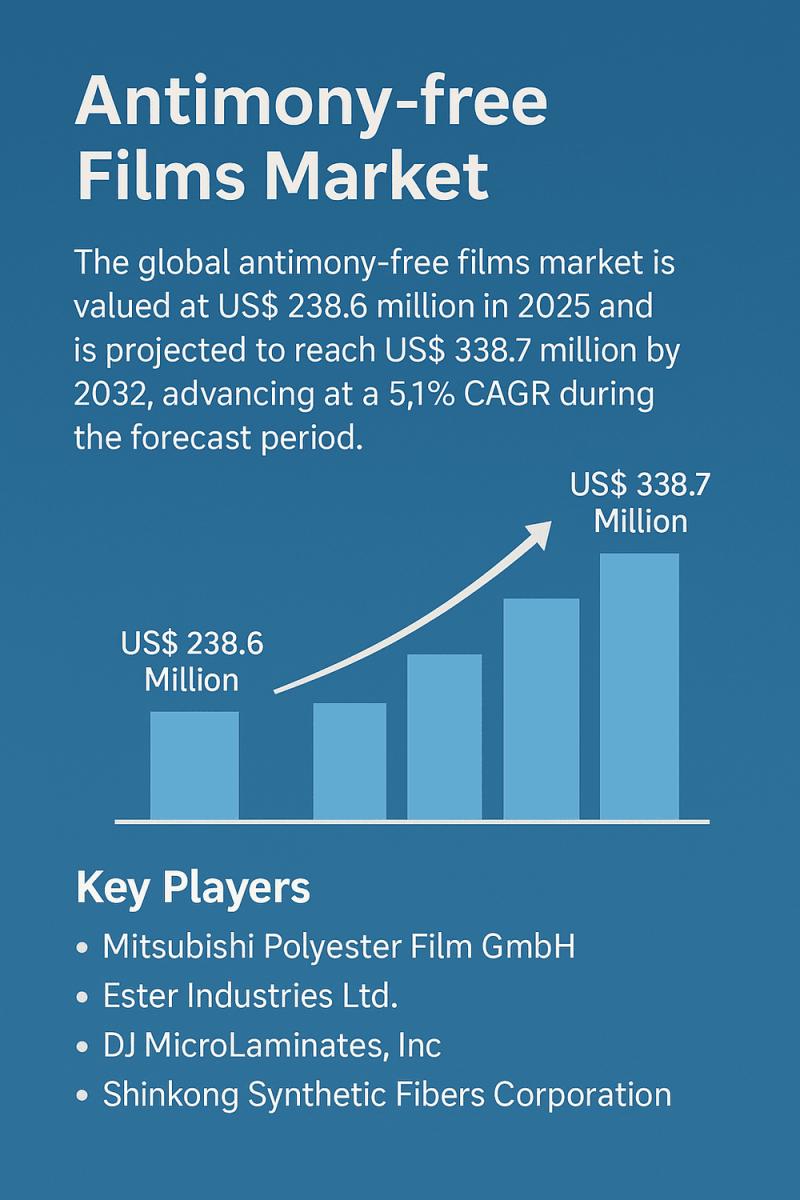 The global Antimony-free Films Market is entering a defining phase of strategic expansion as sustainability, regulatory shifts, and consumer safety expectations reshape the packaging and materials landscape. With rising concerns surrounding antimony-based catalysts in polyester films, end-use industries are accelerating the transition toward safer, more compliant, and environmentally responsible alternatives. According to industry estimates, the market is valued at US$ 238.6 million in 2025 and is projected to reach US$