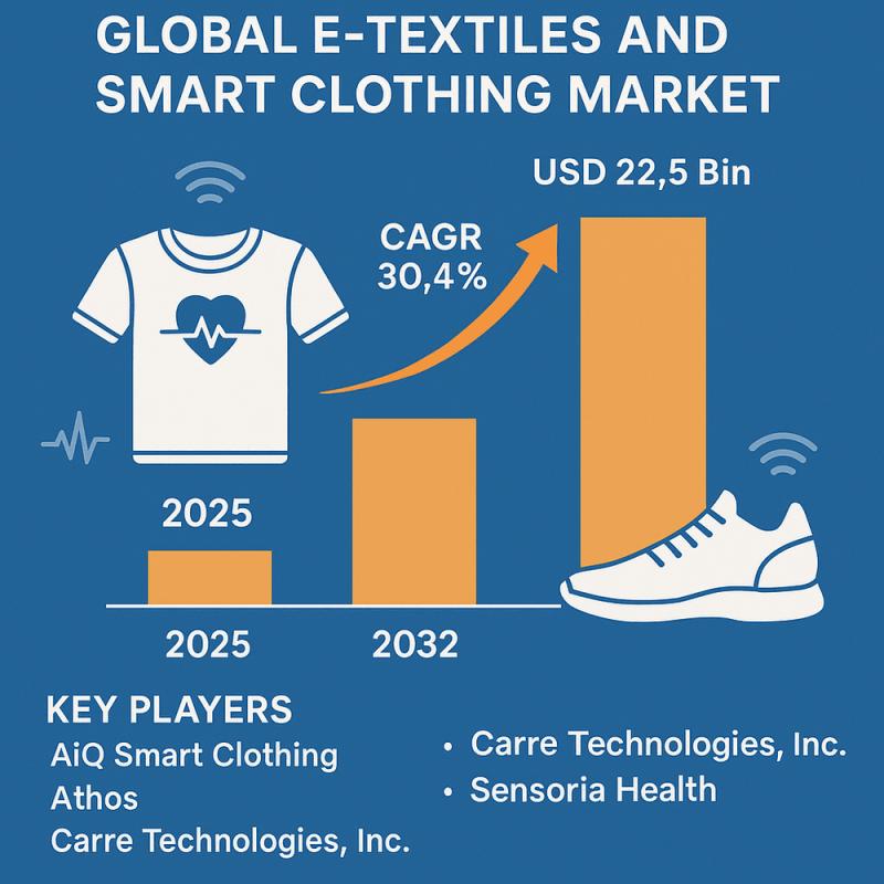 The global E-textiles and Smart Clothing Market is entering a transformative growth phase as consumers, industries, and healthcare systems increasingly adopt intelligent wearable technologies. With rising integration of sensors, conductive materials, and connected textile platforms, the industry is projected to rise from USD 3.5 billion in 2025 to USD 22.5 billion by 2032, registering a remarkable CAGR of 30.4%. The shift toward real-time monitoring, responsive fabrics, and next-generation athletic and…