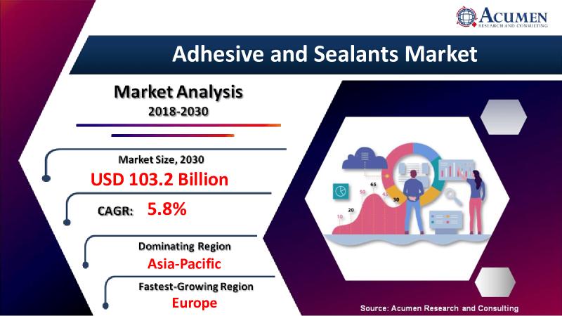 Adhesive and Sealants Market value is set to grow by USD 103.2 Billion from 2022 to 2030