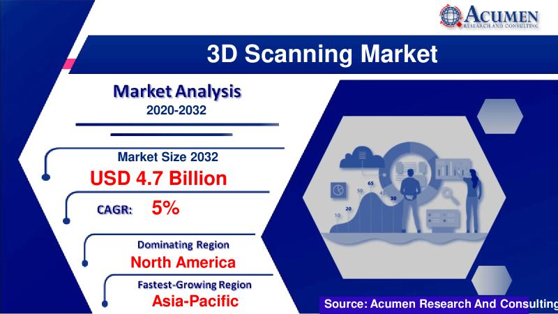3D Scanning Market Size to Occupy More Than USD 4.7 Billion by 2032 | CAGR 5% from 2023 to 2032The 3D Scanning Market research report published by Acumen Research and Consulting provides a comprehensive yet detailed analysis of the global market landscape. The report helps our clients understand the market scenario while also providing a detailed historical account of the market over the previous years. The 3D Scanning Market size focuses on various growth factors and assists decision makers in making informed decisions to maximize growth potential while increasing profitability.