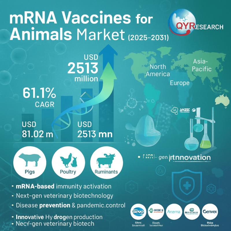 Los Angeles, United States - QY Research has released a new publication titled "Global mRNA Vaccines for Animals Market Share and Ranking, Overall Sales and Demand Forecast 2025-2031." This comprehensive study provides an in-depth evaluation of the worldwide mRNA Vaccines for Animals industry, uncovering the major forces influencing market growth and delivering high-value insights for investors, industry leaders, and strategic decision-makers. The report examines critical elements such as market dynamics,…