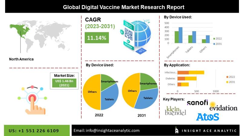 InsightAce Analytic Pvt. Ltd. announces the release of a market assessment report on the "Global Digital Vaccine Market Size, Share & Trends Analysis Report By Device Type (Smartphone, Tablets, Others), Application (Diabetes, Infectious Diseases, Cardiovascular Diseases, Others)- Market Outlook And Industry Analysis 2031"The global digital vaccine market is estimated to reach over USD 3.71 billion by 2031, exhibiting a CAGR of 11.14% during the forecast period.
