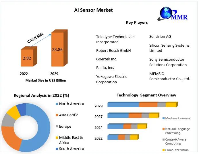 You can edit or delete your press release The global AI Sensor Market, valued at USD 2.92 Bn in 2022, is expected to experience significant growth, with the total industry revenue projected to reach nearly USD 23.86 Bn by 2029, growing at a CAGR of 35 Percent during the forecast period. here