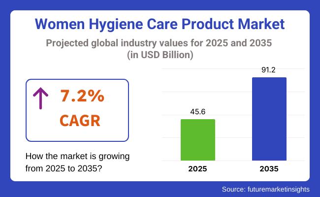 The global women hygiene care product market is on a dynamic growth trajectory, expected to soar from USD 45.6 billion in 2025 to an impressive USD 91.2 billion by 2035, registering a robust CAGR of 7.2% over the forecast period. This surge is propelled by increasing awareness around menstrual health, continuous product innovation, and a growing demand for eco-friendly and personalized hygiene solutions worldwide.