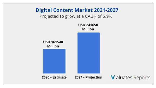 Digital Content market size is projected to reach US$ 241650 million by 2027, from US$ 161540 million in 2020, at a CAGR of 5.9% - Valuates Reports