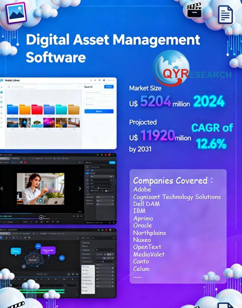 The global market for Digital Asset Management Software was estimated to be worth US$ 5204 million in 2024 and is forecast to a readjusted size of US$ 11920 million by 2031 with a CAGR of 12.6% during the forecast period 2025-2031.