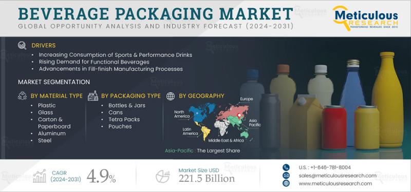 Beverage Packaging Market to Reach $221.5 Billion by 2032, Growing at 4.9% CAGR