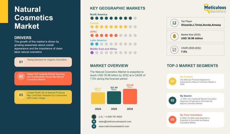 Natural Cosmetics Market to Reach $35.96 Billion by 2032, Growing at 7.5% CAGR