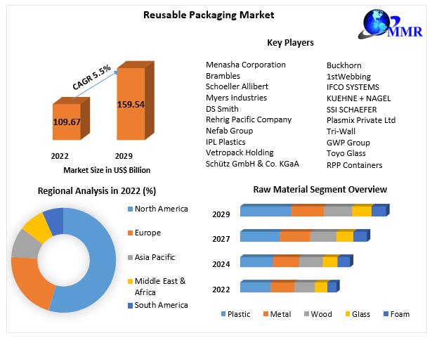Reusable Packaging Market size was valued at US$ 109.67 Bn. in 2022 and the total revenue is expected to grow at 5.5% through 2023 to 2029, reaching nearly US$ 159.54 Bn.Reusable Packaging Market Report Scope and Research Methodology