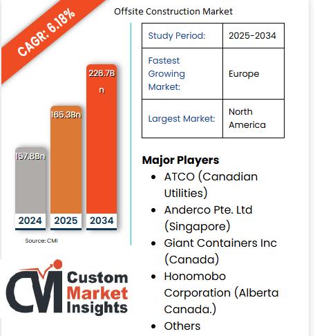 • The global offsite construction market was valued at USD 165.3 billion in 2025.