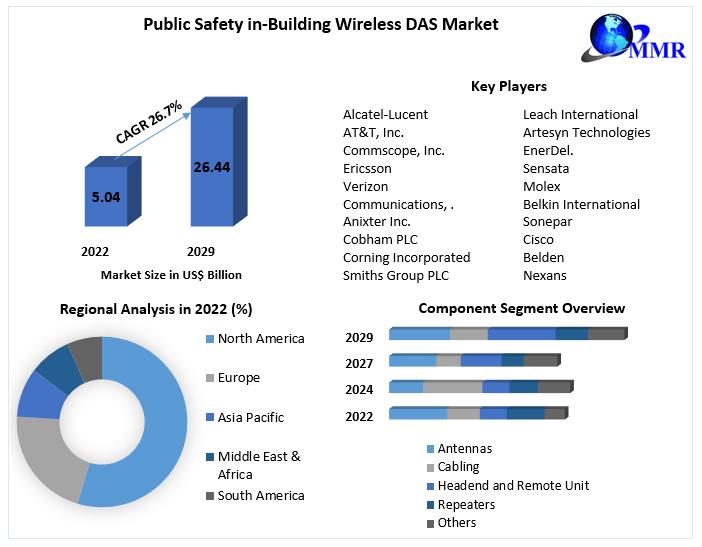 In the dynamic landscape of public safety, the In-Building Wireless DAS (Distributed Antenna System) market is poised for remarkable growth. With an expected CAGR of 26.7% during the forecast period, the market size is projected to reach an impressive US$ 26.44 billion by 2029. Let's dive into the dynamics, drivers, and regional insights shaping this critical industry.Know More About The Report :https://www.maximizemarketresearch.com/market-report/global-public-safety-in-building-wireless-das-market/95092/