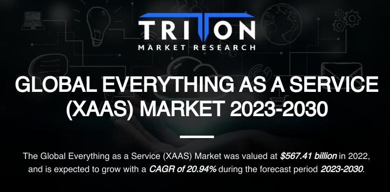 Based on Triton's research report, the global everything as a service (XaaS) market gained $567.41 billion in 2022, and is expected to advance with a CAGR of 20.94% by 2030.A recent study by Triton Market Research titled Global Everything as a Service (XaaS) Market comprises the Global Analysis and Forecasts by Business Type (Business-to-Consumer (B2C), Business-to-Business (B2B)), Type (Platform as a Service (PaaS), Software as a Service (SaaS), Infrastructure as a Service (IaaS), Device as a Service (DaaS), Analytics as a Service (AaaS), Unified Communications as a service (UCaaS), Other Types), Vertical (Healthcare & Life Sciences, Manufacturing, IT & Telecommunication, Consumer Goods & Retail, Government & Public Sector, Banking, Financial Services, and Insurance (BFSI), Other Verticals), Organization Size (Large Enterprises, Small and Medium Enterprises), and Regional Outlook (Asia-Pacific, North America, Middle East and Africa, Latin America, Europe).