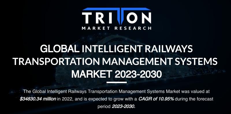 As per Triton Market Research's analysis, the global intelligent railways transportation management systems market attained $34830.34 million in 2022. It is anticipated to record a CAGR of 10.95% during 2023-2030.A recent study by Triton Market Research titled 'Global Intelligent Railways Transportation Management Systems Market' includes the Global Analysis and Forecasts by Application (Passenger Information Management, Automated Ticketing, Automated Traffic Control, Other Applications), by Component (Software [Video Recording Software, Smart Traffic Management Analysis Software, Database Management Systems, Other Software Components], Service [Support & Maintenance Services, Cloud Management Services], Hardware [Security & Surveillance Cameras, Line Wires, Sensors, Information & Rule Display Systems, Other Hardware Components]), and Regional Outlook (Middle East and Africa, Europe, Asia-Pacific, Latin America, North America).