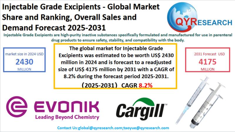 Global Leading Market Research Publisher QYResearch announces the release of its latest report "Injectable Grade Excipients - Global Market Share and Ranking, Overall Sales and Demand Forecast 2025-2031". Based on current…