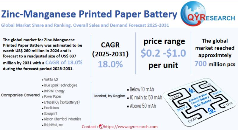 Unlock the Future of the Zinc-Manganese Printed Paper Battery Market: Comprehensive Global Market Report 2025-2031