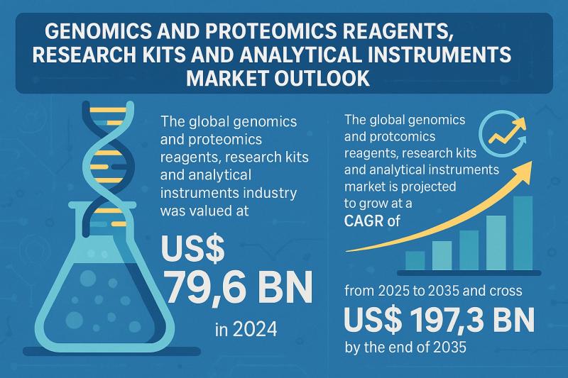 The global genomics and proteomics reagents, research kits, and analytical instruments market (https://www.transparencymarketresearch.com/proteomics-market.html)was valued at US$ 79.6 billion in 2024 and is projected to cross US$ 197.3 billion by 2035, growing at a compound annual growth rate (CAGR) of 8.6% from 2025 to 2035. This dynamic growth trajectory underscores the rapid integration of genomics and proteomics technologies into mainstream biomedical research, diagnostics, and personalized healthcare. The surge in investment toward…