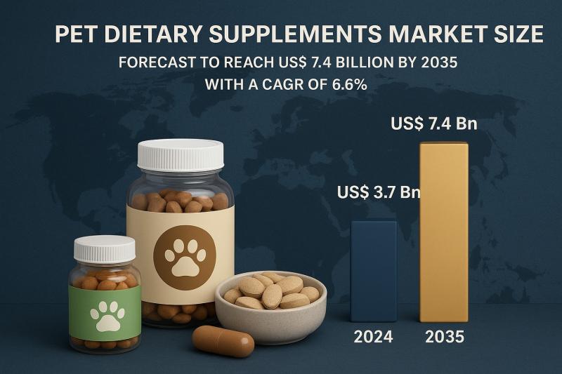 The global pet dietary supplements market was valued at US$ 3.7 Bn in 2024 and is projected to reach US$ 7.4 Bn by 2035, expanding at a CAGR of 6.6% from 2025 to 2035. Demand for pet supplements continues to surge as pet owners increasingly prioritize preventive healthcare, longevity, immunity, and overall wellness for their pets. Rising pet humanization, premiumization in pet care, and growing…