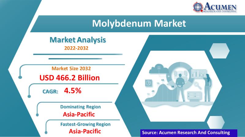 In the realm of industrial metals, Molybdenum stands out as a crucial player, with its versatile applications spanning across various sectors. As industries continue to evolve, the Molybdenum market remains dynamic, driven by technological advancements, growing demand, and shifting global dynamics. In this article, we delve into the competitive landscape, emerging trends, and future growth prospects of the Molybdenum market, shedding light on the opportunities and challenges that lie ahead.Download Free Molybdenum Market Sample Report Here: (Including Full TOC, List of Tables & Figures, Chart) https://www.acumenresearchandconsulting.com/request-sample/562
