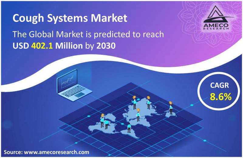 Global cough systems market size is expected to be worth roughly USD 192.8 million by 2030, growing at a CAGR of more than 8.6% during the projected timeframe of 2022-2030, according to Ameco Research