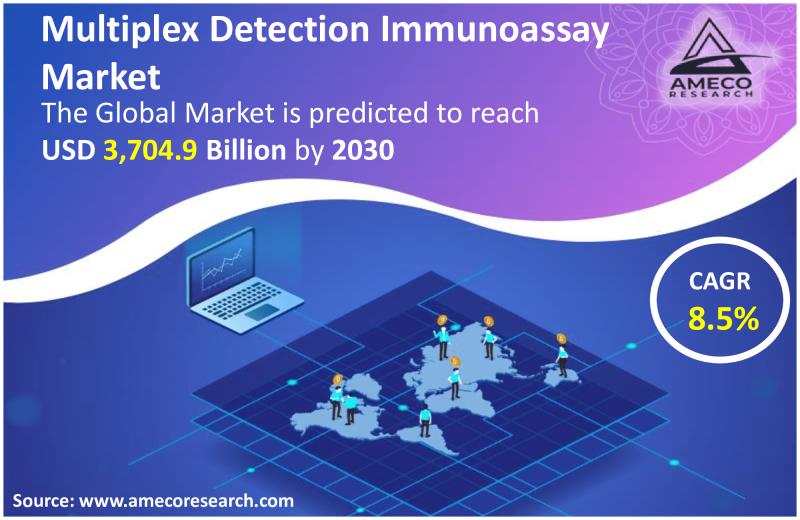 According to Ameco Research 'Multiplex Detection Immunoassay Market report, the analysts took this into account when estimating the Multiplex Detection Immunoassay Market size and CAGR for the respective industry. The report's author has thoroughly examined the market and concluded that the Multiplex Detection Immunoassay Market 's growth will level off in the coming years. In addition to that, the prominent qualitative information added in the report includes Multiplex Detection Immunoassay Market trends, segmentation, key companies, SWOT, PORTER and PEST analysis, market maturity, value chain analysis, and othersThe global Multiplex Detection Immunoassay Market research report is the well-analyzed solution for the decision-makers and academicians who are seeking a detailed analysis in terms of both qualitative as well as quantitative, for the historic period and for the upcoming years forecast. The research report encompasses the industry overview along with the forthcoming threats and supporting factors that will drive or hamper the market growth and provide opportunities in the near future