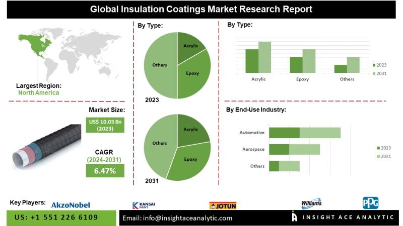 "Insulation Coatings Market" in terms of revenue was estimated to be worth USD 10.03 billion in 2023 and is poised to reach USD 16.3 billion by 2031, growing at a CAGR of 6.47% from 2024 to 2031 according to a new report by InsightAce Analytic.