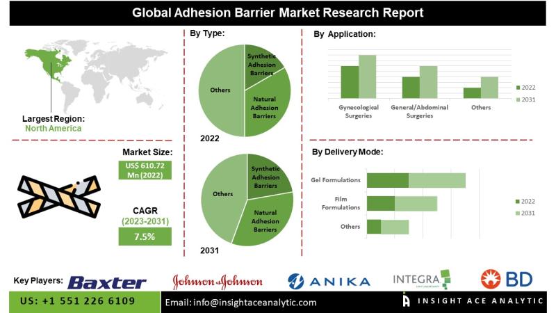 Adhesion Barrier Market worth $1146.97 Mn by 2031 - Exclusive Report by InsightAce Analytic Pvt. Ltd.InsightAce Analytic Pvt. Ltd. announces the release of a market assessment report on the "Global Adhesion Barrier Market- (By Type (Synthetic Adhesion Barriers (Hyaluronic Acid, Regenerated Cellulose, Polyethylene Glycol, Others), Natural Adhesion Barriers (Collagen & Protein, Fibrin)), By Delivery Mode