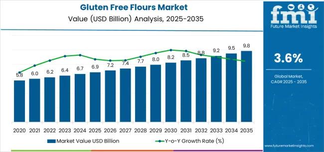 The Gluten Free Flours Market is poised for steady growth, with an estimated valuation of USD 6.9 billion in 2025, projected to expand to USD 9.8 billion by 2035, reflecting a CAGR of 3.6% over the forecast period. Rising awareness of celiac disease, gluten intolerance, and lifestyle-driven dietary choices has fueled a surge in demand for gluten-free products globally.