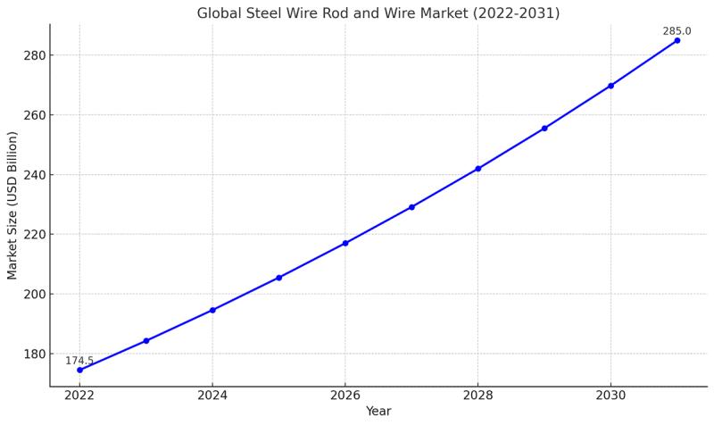 Leander, Texas and TOKYO, Japan - Nov. 14 2025 The Global Steel Wire Rod and Wire Market reached a value of USD 174.5 billion in 2022 and is projected to grow steadily, reaching USD 269.5 billion by 2031. This represents a CAGR of 5.6% during the forecast period 2024-2031.