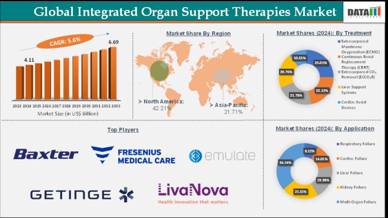 "Integrated Organ Support Therapies Market Size reached US$ 4.11 Billion in 2024 and is expected to reach US$ 6.69 Billion by 2033, growing at a CAGR of 5.6% during the forecast period 2025-2033." As per DataM intelligence research report