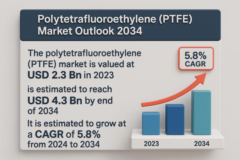 The Polytetrafluoroethylene (PTFE) Market is poised for steady expansion, with the industry valued at USD 2.3 billion in 2023 and projected to reach approximately USD 4.3 billion by 2034. This growth reflects a CAGR of 5.8% from 2024 to 2034, driven by increasing demand across key sectors such as automotive, electronics, chemical processing, and industrial equipment. PTFE's exceptional properties-high chemical resistance, low friction, and superior thermal stability-continue to support its…