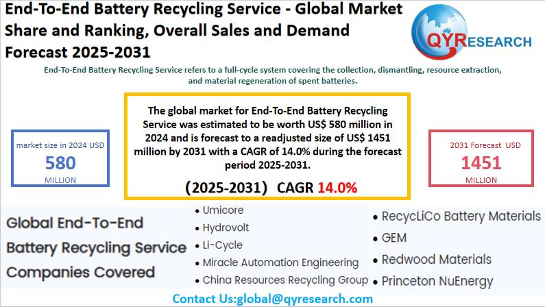 End-To-End Battery Recycling Service Global Market Research Report 2025-2031: In …