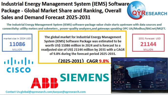 The global market for Industrial Energy Management System (IEMS) Software Package was estimated to be worth US$ 11086 million in 2024 and is forecast to a readjusted size of US$ 21144 million by 2031 with a CAGR of 9.8% during the forecast period 2025-2031.