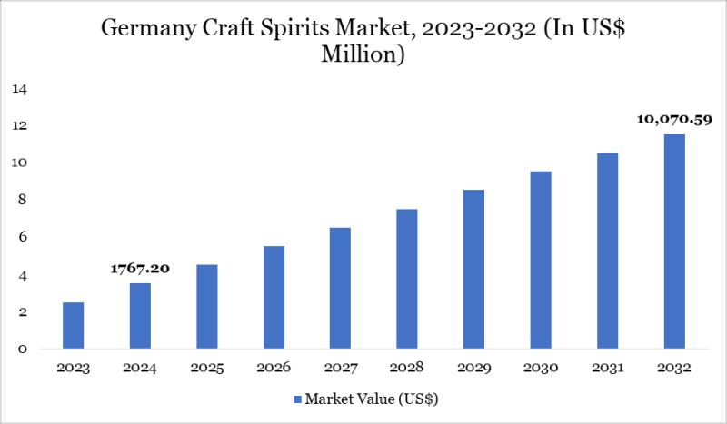 "Germany Craft Spirits Market reached US$ 1,767.20 million in 2024 and is expected to reach US$ 10,070.59 million by 2032, growing with a CAGR of 24.30% during the forecast period 2025-2032." As per DataM intelligence research report