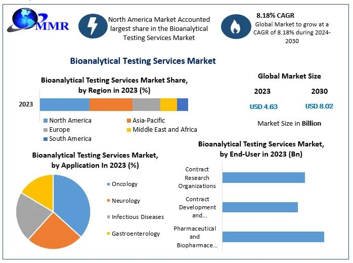 Bioanalytical Testing Services Market was valued at US$ 4.63 Bn. in 2023, and it is expected to reach US$ 8.02 Bn by 2030, exhibiting a CAGR of 8.18 % during the forecast period
