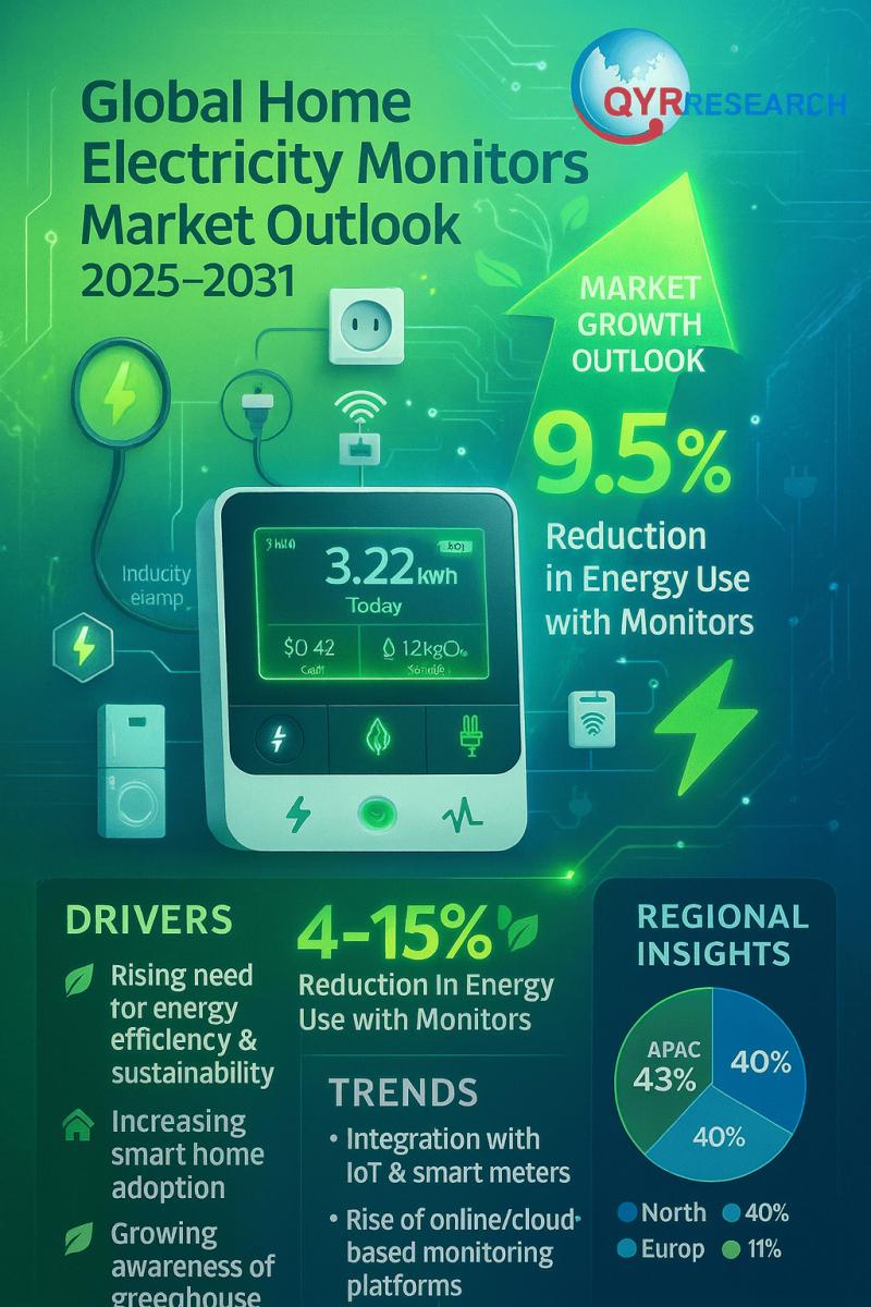 Los Angeles, United States - According to the latest market research study published by QY Research, the Global Home Electricity Monitors Market is poised for substantial growth over the forecast period 2025-2031. Valued at USD 250 million in 2024, the market is projected to reach USD 467 million by 2031, expanding at a CAGR of 9.5%. This anticipated expansion is attributed to rising adoption across multiple industries, technological innovation, evolving consumer