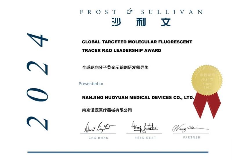 Frost & Sullivan grants Nanjing Nuoyuan Medical Devices Co., Ltd. the "GLOBAL TARGETED MOLECULAR FLUORESCENT TRACER R&D LEADERSHIP AWARD"